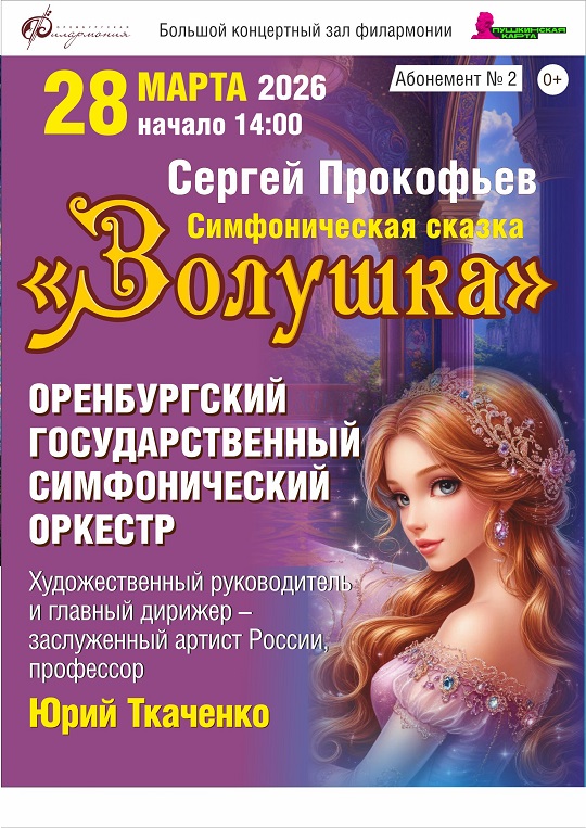 28 марта в Большом концертном зале филармонии юных зрителей ждет симфоническая сказка "Золушка" из абонемента №2 "Сказки в музыке".
